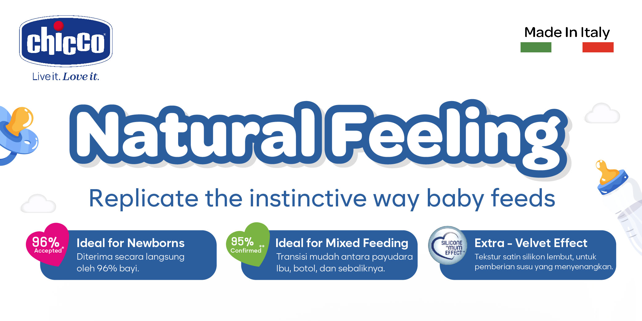 Botol Susu Natural Feeling Chicco : Meniru cara bayi menyusui secara naluriah.